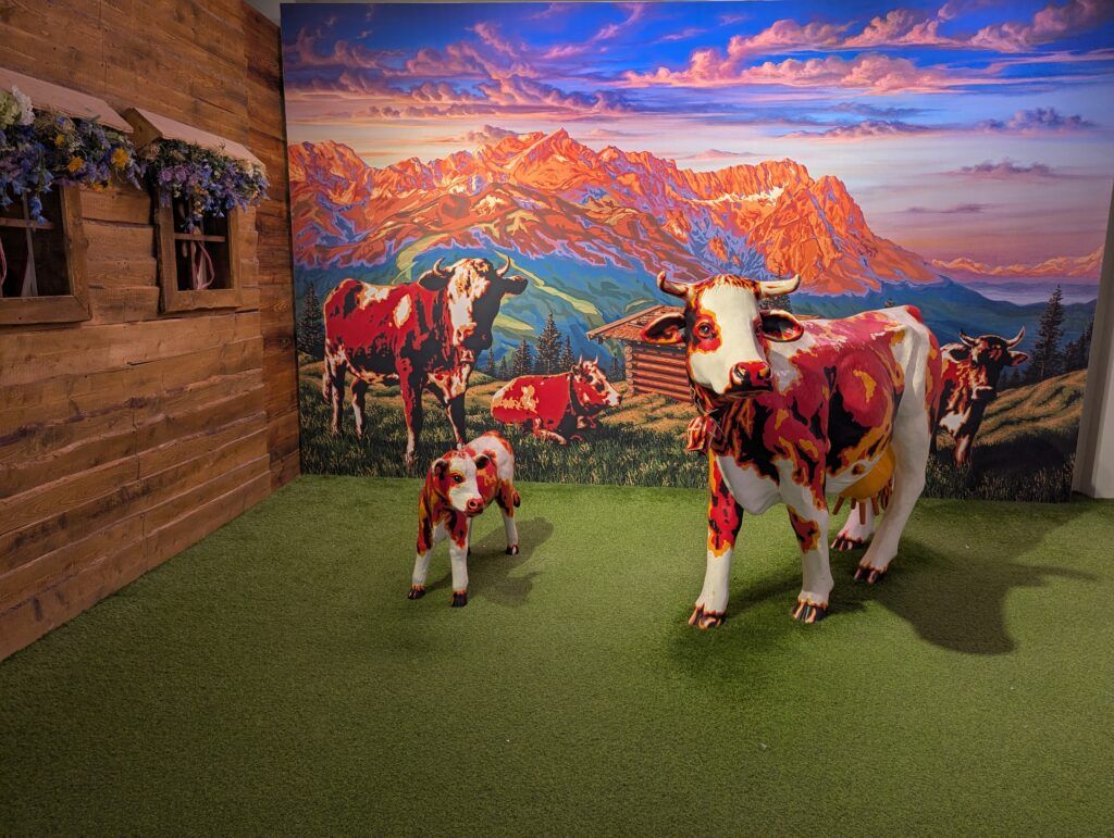 Auch wenn die Jugendlichen meiner Meinung das Smartphone viel zu häufig und lange in die Hand nehmen, können sie damit im Magic Bavaria wirklich äußerst kreative Werke schaffen. Wer sich zusätzlich noch ausgedruckte Fotos oder einen digitalen Bildordner wünscht, kann dies gegen eine zusätzliche Gebühr und mithilfe eines QR-Codes ebenfalls machen. Interaktive Stationen wechseln sich stets mit moderner Kunst, welche allesamt einen bayerischen Bezug aufweist, ab. So findet man z.B. auch von dem Popartkünstler Bernhard Rieger ein imposantes Kunstwerk, das in knalligen Farben das bekannte Panorama des sehr beliebten Ski- und Olympiaorts Garmisch abbildet.