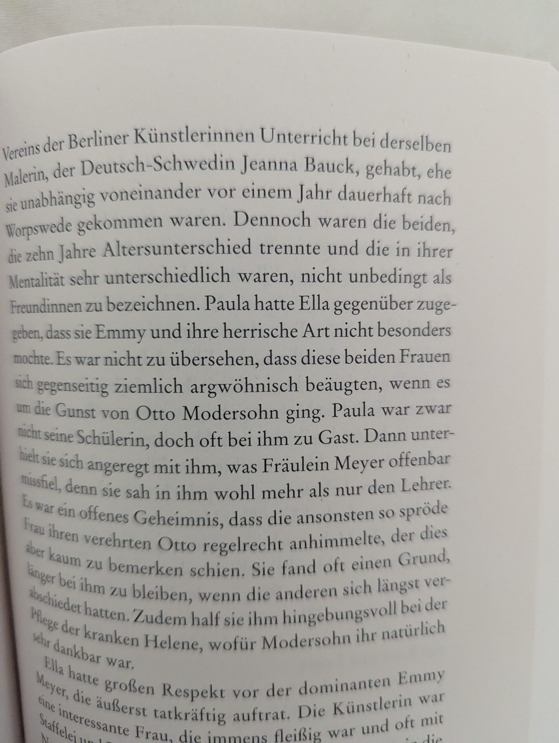 Der Autorin, Birgit Poppe, die Kunstgeschichte und Germanistik studiert hat, ist nach dem sehr erfolgreichen Roman „Die Frau am Fenster – ein Leben an der Seite von Caspar David Friedrich“ ein weiteres wunderbares Werk gelungen, das einen sowohl reale Kunstgeschichte hautnah erleben lässt als auch an zahlreichen fiktiven menschlichen Zusammentreffen und Lebensentscheidungen teilhaben lässt. Abgerundet wird dieser sehr lesenswerte Roman durch die Angabe am Ende des Buches einer umfangreichen Literaturauswahl sowie der lebhaften Vorstellung der wichtigsten in Worpswede schaffenden Künstlerinnen und Künstler. Des Weiteren führt der Roman jede/n sehr beeindruckend in das Leben um 1900 ein, in dem die sogenannten „Malweiber“ leider überhaupt kein Ansehen in der Gesellschaft genossen.