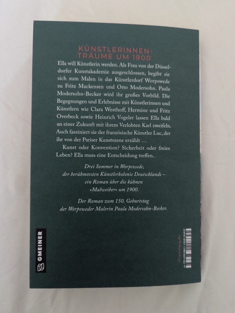Vor unserem diesjährigen kurzen Aufenthalt in Bremen war mir die Künstlersiedlung von Worpswede kein wirklicher Begriff, nun ist sie nicht nur in diesem ganz aktuell im Gmeiner-Verlag erschienenen Roman von Birgit Poppe „Die Malerin im Birkenwald“ der zentrale Schauplatz. Worpswede ist als Deutschlands berühmteste Künstlerkolonie bekannt, in der solche prominenten Künstler wie Fritz Mackensen oder auch das Ehepaar Paula Modersohn-Becker und Otto Modersohn bereits vor 130 Jahren lebten und wirkten. Der Roman der Autorin Birgit Poppe erscheint nun ganz pünktlich zum 150. Geburtstag der Worpsweder Malerin Paula Modersohn-Becker und lässt einen unverzüglich in das ganz in der Nähe von Bremen gelegene Künstlerdorf eintauchen. Dabei legt die Autorin bei der Geschichte den Schwerpunkt auf die Protagonistin Ella, welche seit frühester Jugend Künstlerin werden will, jedoch aufgrund ihres Geschlechts von der Düsseldorfer Kunstakademie zu Beginn des 20. Jahrhundert ausgeschlossen wird.