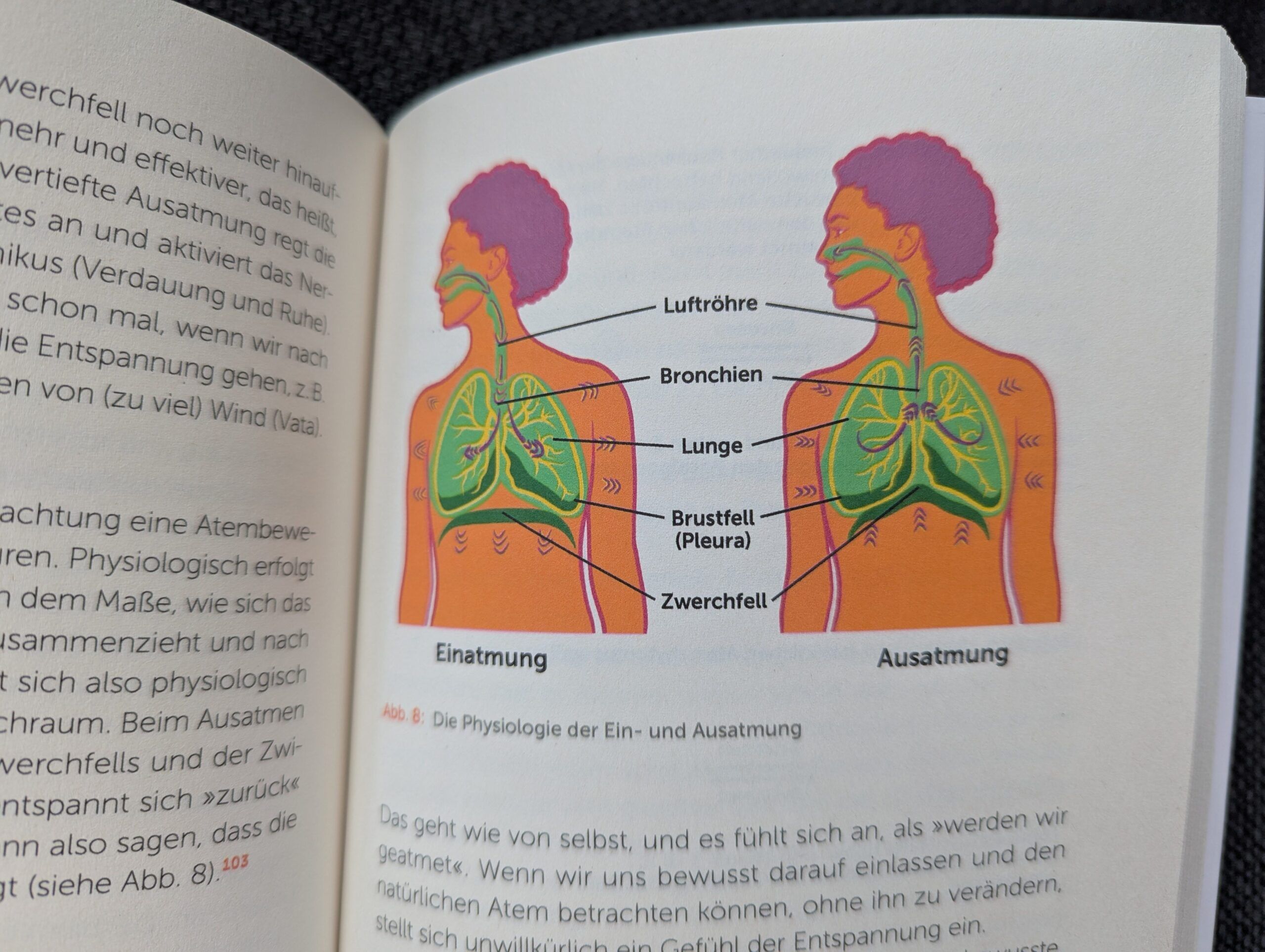 Dabei bekommt man ebenso geschichtlich äußerst interessante Einblicke in diese so viele Jahrhunderte und Jahrtausend alten Traditionen als auch neben vielen theoretischen Ausführungen ebenso viele, sehr alltagstaugliche und gut verständliche Praxisbeispiele. Dank diesen lässt sich die Yogapraxis ausgesprochen leicht mit verschiedenen Traditionen aus dem Ayurveda verbindet. Am Ende des Buches findet sich zudem ein sehr ausführliches und übersichtliches Glossar, dass alle in dem Werk verwendeten Begriffe hervorragend verständlich erklärt von dem sogenannten Abhinivesha, der Furcht vor dem Tod, bis hin zu Yogavahi, einem Begriff aus dem Ayurveda, mit dem ein Verstärker, z.B. der menschliche Atem als Träger von Qualitäten bezeichnet wird.