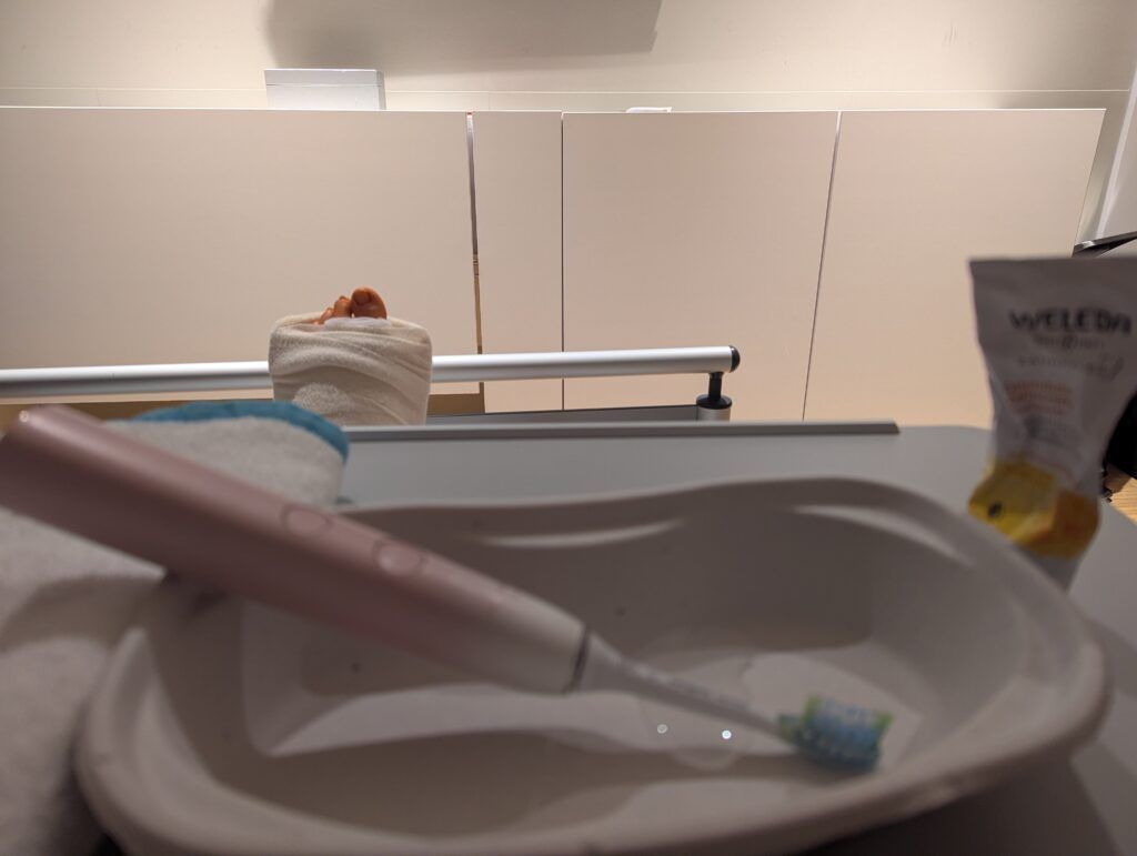 Und der Vater glänzte trotz physischer Anwesenheit durch absolute geistige und emotionale Abwesenheit, sein Anblick erweckte dafür unverzüglich ein Déjà-vu, wie ich es vor 22 Jahren wenige Tage nach der Geburt unserer ältesten Tochter bereits erlebt hatte. Hatte ich mir damals ausgemalt, wie er während seines Wochenbettbesuchs im Krankenhaus mir das schreiende Bündel kurz abnehmen und in den starken väterlichen Armen beruhigend sanft hin und her wiegen würde, fiel er ermattet von den Anstrengungen der vergangenen Tage in meinem Wöchnerinnenbett in einen tiefen Schlaf, nachdem ich gerade noch mit dem Stillen unserer Tochter beschäftigt war. Da nun zwei Jahrzehnte später, das Bett bereits durch mich besetzt war, musste er mit dem -offenbar überaus bequemen – Komfortsessel, der zwischen meinem Bett und dem Fenster positioniert war, Vorlieb nehmen. Aber auch in dieser Position ließ es sich offenbar bestens schlafen, bis von den Kindern zum Aufbruch getrommelt wurde, da noch der abendliche Zumbakurs besucht werden sollte.