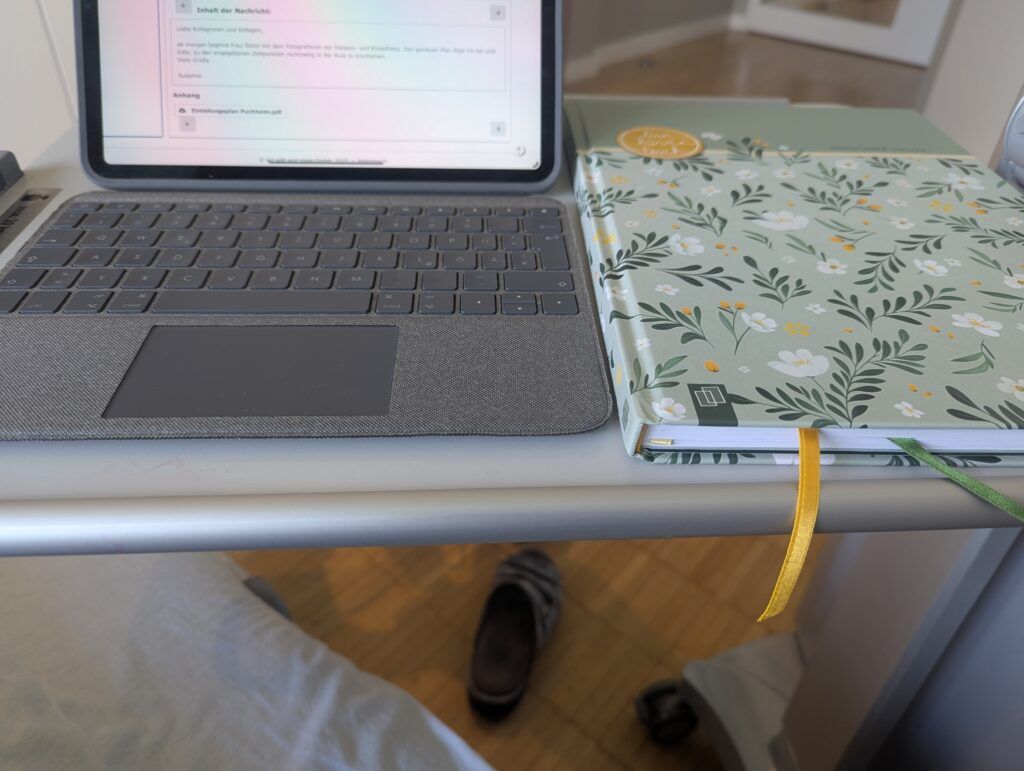 Auch während meines stationären Aufenthalts blieb ich mit zahlreichen Schülerinnen und Schülern in Kontakt, welche mir nicht nur beste Genesungswünsche übermittelten, sondern auch mein Gedächtnis fit hielten, in dem ich gefragt wurde, ob ich mich noch erinnern würde, von wem ich alles die Skilagerzettel eingesammelt hätte, welchen Fehlerschritt ich stets bei den Vokabeltests anwenden würde und zudem beschäftigte ich mich mit einer Kollegin noch intensiv mit der Frage, ob wir ein ganz neuartiges P-Seminar ins Leben rufen sollten sowie vieles mehr. Selbstverständlich konnte ich dies, mit großen Schmerzen und äußerst immobil, nur alles auf digitalem Wege verrichten.