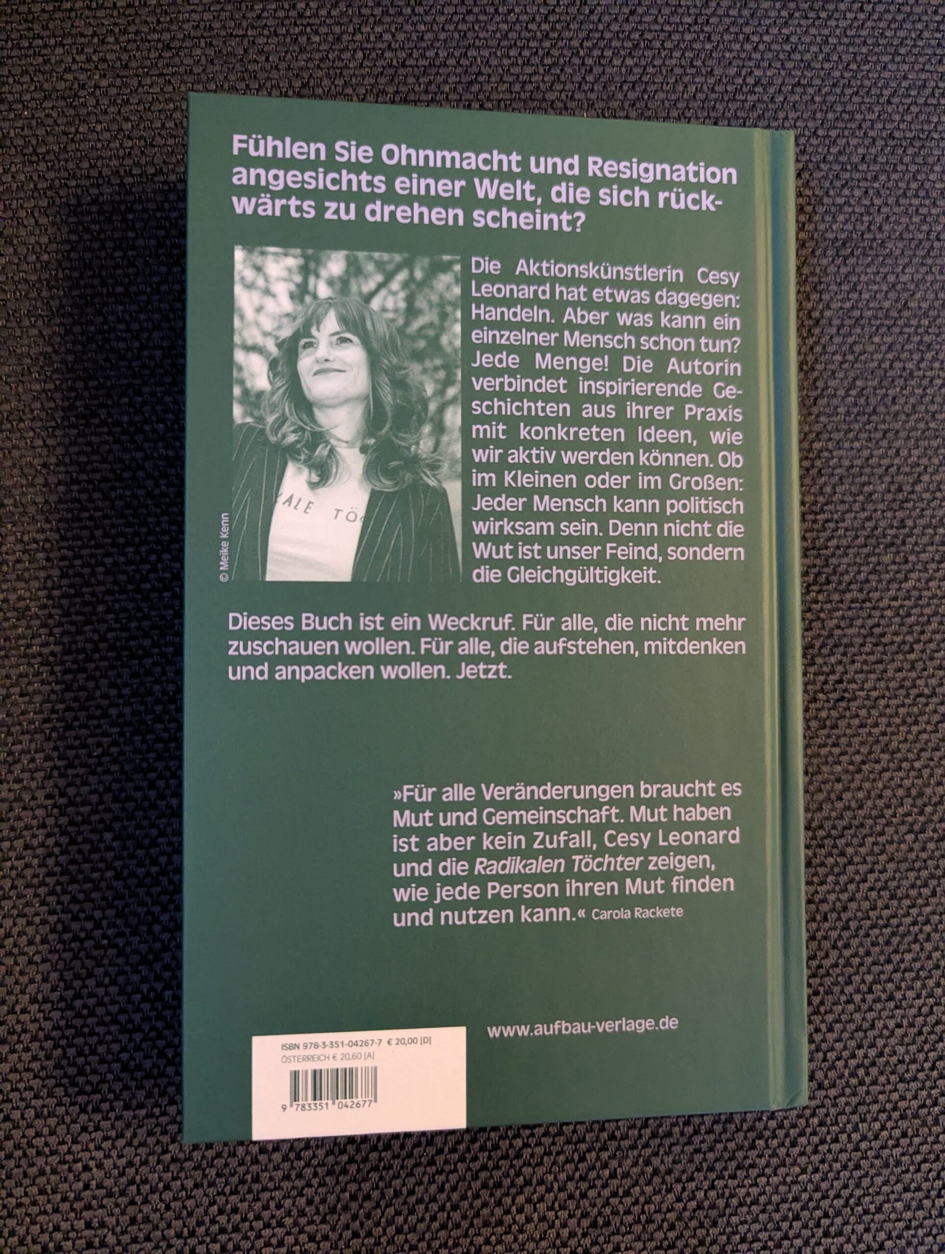 Bereits der Titel entspricht mit der Alliteration voll und ganz meinen Überschriftenvorlieben und genauso vielversprechend liest sich auch der weitere Inhalt. Sehr stimmig sind zudem die drei Hauptkapitel jeweils mit den drei Alliterationsworten des Buchtitels überschrieben. Die Autorin ist als Aktionskünstlerin und Gründerin von „Radikale Töchter“ bekannt geworden, welche die Bereiche der Kunst mit denen von Design, Politik und Bildung eindrucksvoll miteinander verbindet. Die Autorin erzählt in dem ganz aktuell im Aufbau-Verlag erschienenen Werk aus ihrem bewegten Leben und motiviert dadurch mit Sicherheit eine Großzahl der Leserinnen und Leser zu einem politischen oder sozialen Engagement.