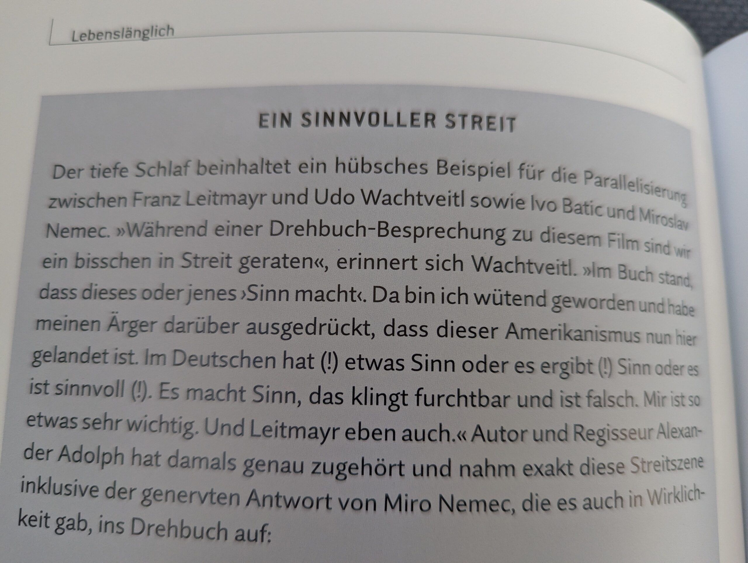 Auf knapp 200 Seiten kann man sich immer wieder sowohl die schönsten Szenen der Münchner Krimis ins Gedächtnis rufen als auch sehr viel Persönliches über diese beiden Originale erfahren oder aber auch einen berührenden, langen Abschiedsbrief des Regisseurs Dominik Graf lesen und noch vieles mehr. Und selbstverständlich darf eine herrliche Darstellung weiterer Kollegen von Nemec und Wachtveitl wie z.B. der unvergessene Michael Fitz in seiner Rolle als Carlo Menzinger oder auch Ferdinand Hofer als Kalli Hammermann ebenso wenig fehlen wie die liebevolle Danksagung der Autorin und Münchner Merkur Redakteurin Stefanie Thyssen am Ende des Buches, dank der man auch Interessantes über die Genese dieses Werkes erfährt.
