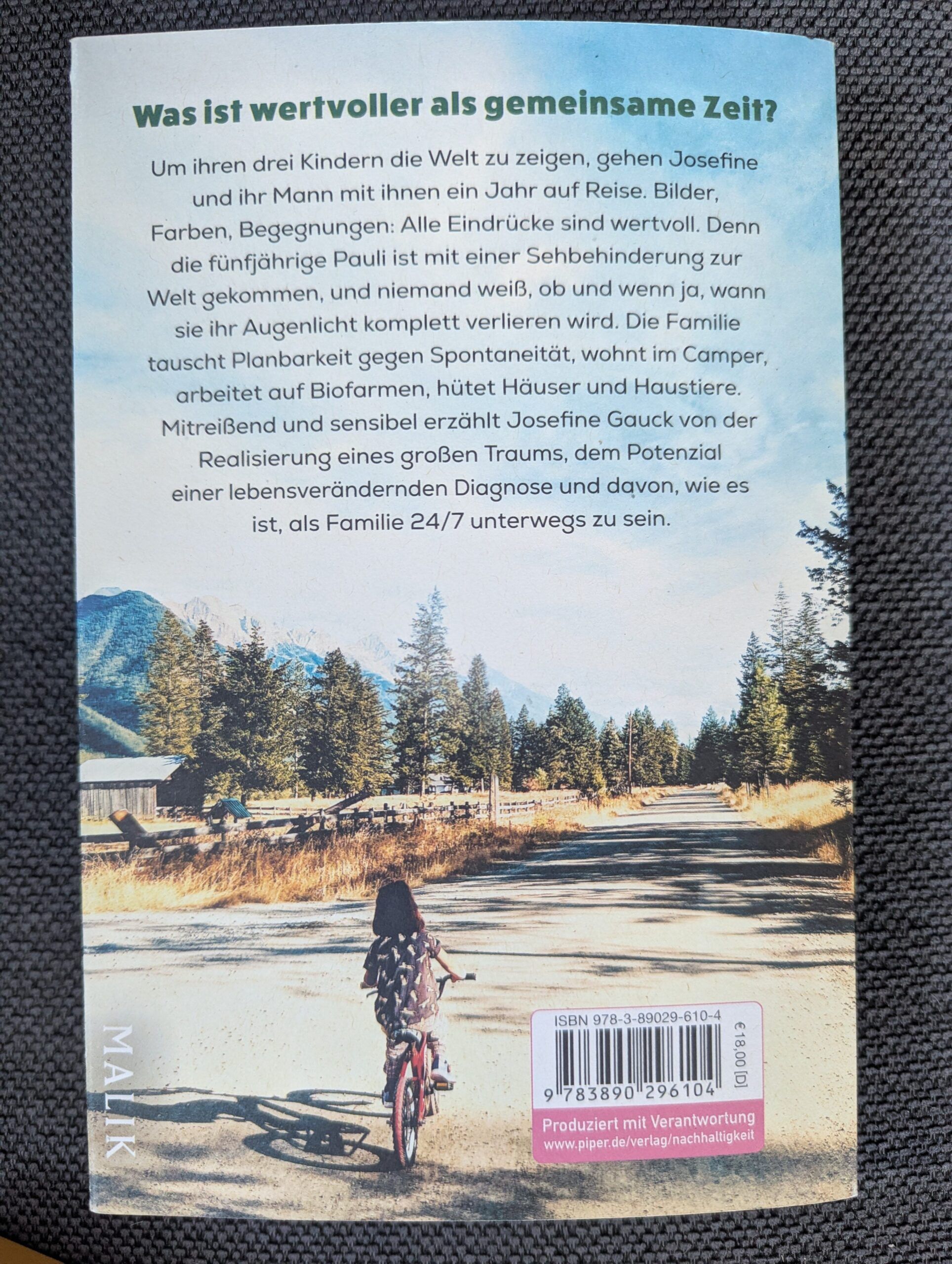 Länger zu verreisen als die üblichen ein, zwei oder maximal drei Wochen am Stück, bleibt für viele, egal, ob allein, als Paar oder aber auch als kleinere oder größere Familie, ein Wunschtraum, der sich oft durch die Alltagszwänge, die fehlenden dafür nötigen finanziellen Polster sowie berufliche oder private Verpflichtungen nicht erfüllen lässt. Dass sich nun genau eine Familie mit drei Kindern diesen Traum erfüllt hat, welche noch deutlich mehr allein im Vorfeld zu planen hatte als viele vergleichbare Familien, ist doch eines ihrer Kinder, die fünfjährige Pauli, mit einer aufgrund eines noch nicht erforschten Gendefekts entstandenen Sehbehinderung auf die Welt gekommen, ist um so erstaunlicher und bewundernswerter. Nun ist ganz aktuell im Malik-Verlag dieser berührende und sehr interessante Reisebericht der Familie erschienen, welche für ein Jahr auf eine ganz spezielle Weltreise gegangen ist. Die Gefühlslage, in welche die Familie nach der Diagnose bei der jüngsten Tochter geraten ist, werden wohl alle betroffenen Eltern bestens nachvollziehen können, unabhängig davon, welche chronische Krankheit oder Behinderung bei einem ihrer Kinder diagnostiziert wurde.