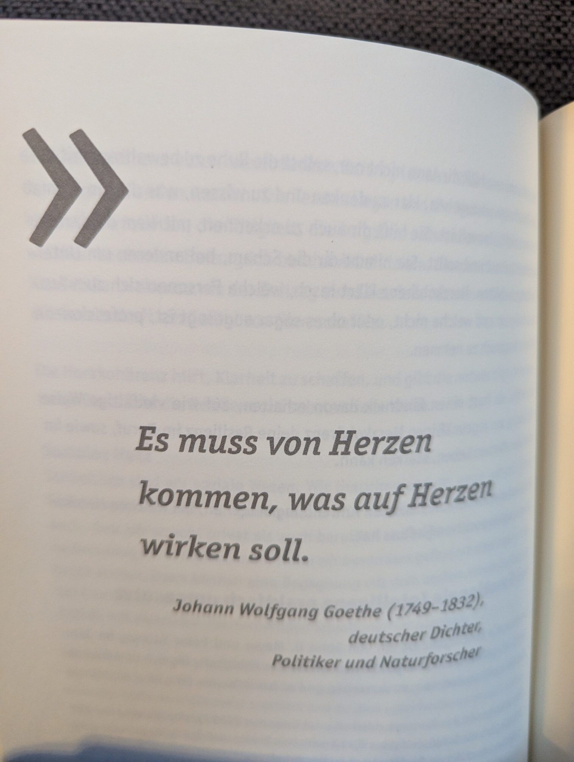 Der Autor schöpft aus einem unwahrscheinlich großen Erfahrungsschatz und eine der Besonderheiten der Herz-Kohärenz-Methode ist, dass sie ebenso erfolgreich im Privatem wie auch im Beruflichen zu wesentlich mehr Ruhe und Gelassenheit führt, was sehr einleuchtend wird, wenn man sich folgendes vergegenwärtigt: „…dass das Herz nicht nur Blut durch den Körper pumpt, sondern durch seine Funktionsweise auch großen Einfluss auf unsere Psyche und unsere inneren Zustände nimmt.“ (S. 16) Alle, welche sich gerne noch tiefer mit der praktischen Seite der Selbstführung beschäftigen möchten, erhalten einen QR-Code im Buch, mit dem sie zu einer digitalen Playbox kommen, in der alle Herzübungen mit zusätzlichen Tipps für ein spielend leichtes Umsetzen in die Praxis zu finden sind. Zusätzlich zu den überaus interessanten Theorie- und Praxisteilen ist auch jedem einzelnen Kapitel ein stets sehr passendes und inspirierendes Zitat einer bekannten Persönlichkeit der verschiedensten Jahrhunderte vorangestellt. Und so liest man ebenso von Francesco Petrarca weise Worte als auch von Goethe oder aber auch von Leo Tolstoi bemerkenswerte Aussprüche.