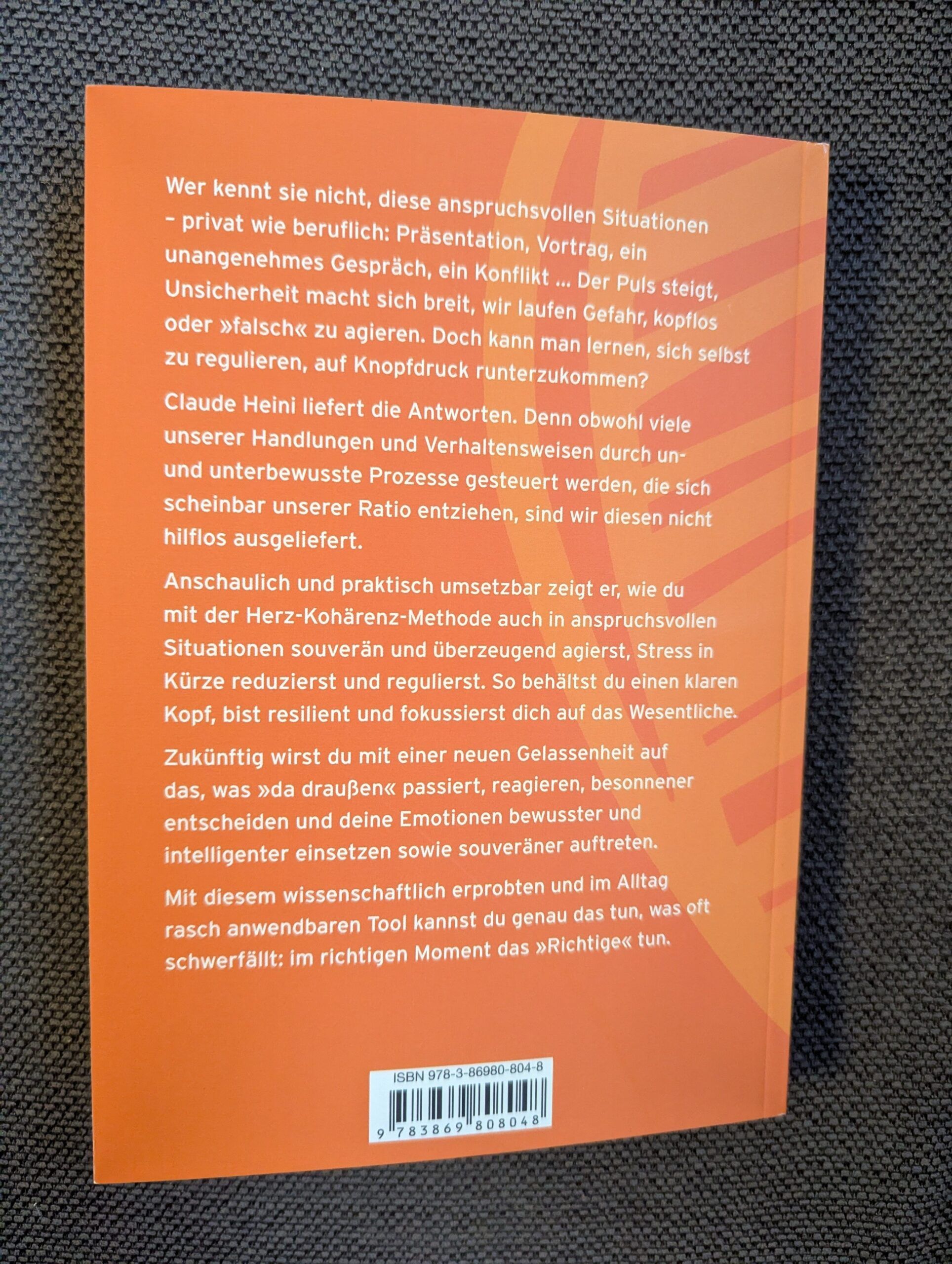 Auf Knopfdruck runterkommen – wie du mit der Herz-Kohärenz-Methode unter Stress in Prüfungen, Präsentationen, Vorträgen, schwierigen Gesprächen, Verhandlungen …. Deinen Fokus findest, sowie klar denkst und handelst von Claude Heini aus dem Business Village-Verlag
