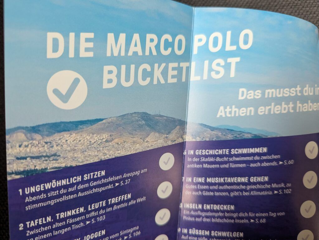 Ich finde es immer wieder faszinierend zu lesen, welch überwiegend großer Anteil des gesamten griechischen Staates sich in dessen Hauptstadt und der Agglomeration niedergelassen hat, bin ich jedoch immer wieder fasziniert, wenn man z.B. auf dem Gerichtsfelsen Areopag sitzt und über ein faszinierendes, nicht enden wollendes Häusermeer blickt, dessen Silhouette noch im Hintergrund von sanften Erhebungen komplettiert wird. Dieser außergewöhnlich schöne Sitzplatz, gerade in den Abendstunden, hat übrigens genauso zuverlässig in den Reiseführer gleich zu Beginn unter der MarcoPolo-Bucketliste Einzug gefunden wie auch ganz besonders faszinierende Museen oder auch tolle Ideen für eintägige Ausflugsschifffahrten zu nahegelegenen Inseln. Dieser Reiseführer ist nun bereits in der 18. Auflage überarbeitet und aktualisiert im MarcoPolo-Verlag erschienen und ist für alle Urlauber ideal geeignet, welche sich einen möglichst vielfältigen Eindruck von dieser griechischen, pulsierenden Metropole machen wollen.