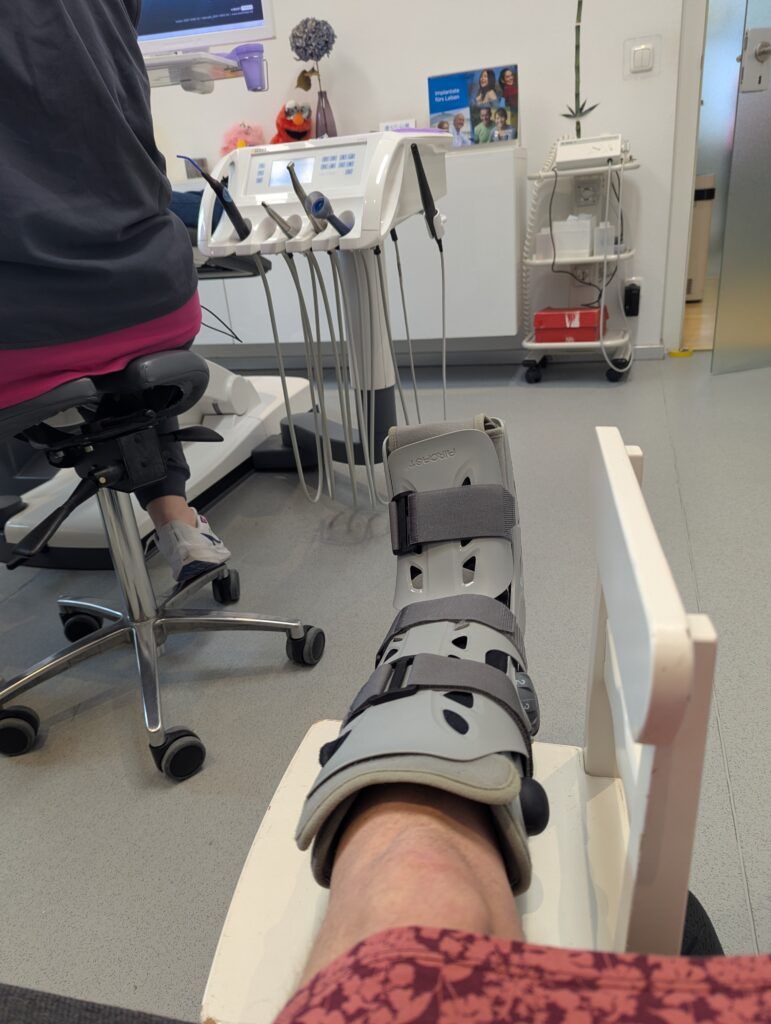 Am Dienstag folgte eine teitaufwändige Fahrt quer durch die Münchner Innenstadt bis zur Biedersteiner Hautklinik, kämpfen wir doch seit Wochen mit extrem entzündeten Hautstellen bei jeder der einzelnen Kathetereinstichsstellen für das Infusionsset der Insulinpumpe. Bei der langen Autofahrt schmerzte der operierte Fuß, den ich sowieso brav auf dem Orthosccoot gelagert hatte, beträchtlich und leider konnte auch nach mehrmaligen Besuchen in dieser Universitätsklinik mit ständig wechselnden Ärzten nicht so wirklich die Ursache für diese so starken Hautentzündungen gefunden werden.