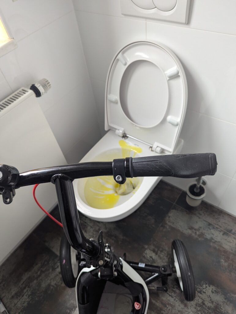 Als ich anschließend feststellen musste, dass in diesem Alter noch nichts von dem Verursacherprinzip bekannt zu sein schien und sich beide jungen Leute ohne eine vorherige gründliche Toilettensäuberung verabschiedeten, blieb mir nichts anderes übrig, als teils einbeinig auf die Krücken gestützt, teils auf dem Orthosccoot kniend, der aufgrund der Enge des Gästebads bei jeder kleinsten Verschiebung in der Tür stecken zu bleiben drohte, fluchend abermals die Toilette wieder in einen möglichst sauberen Zustand zu versetzen. Ich konnte es nicht verhindern, dass dabei der gesammelte Groll in mir hochstieg und ich mich immer noch sehr über die einige Tage zuvor konstatierte Diskrepanz zwischen der Selbst- und der Fremdwahrnehmung unserer Tochter ärgerte. So hatte ich doch rein zufällig von einer Freundin erfahren, dass die (vermeintliche) Mithilfe unserer Tochter sogar kurz davor ein ausgiebiges Thema in der Jugendgruppe der Tochter der Freundin war. Und so traute ich meinen Ohren nicht, als mir vermeldet wurde, dass es darum ging, wie viel unsere „arme Tochter“ täglich im Haushalt mithelfen müsse. Ich schäumte vor Wut, wenn man bedenkt, dass diese neben vielen Tagen, an denen die einzige Haushaltsleistung darin besteht, ihr jeweils benutztes Geschirr in die Küche zu tragen, sich an den „guten“ Tagen darin zeigt, über den ganzen Tag maximal zehn Minuten einer Haushaltstätigkeit nachzugehen…