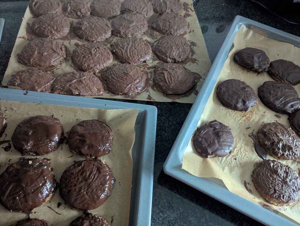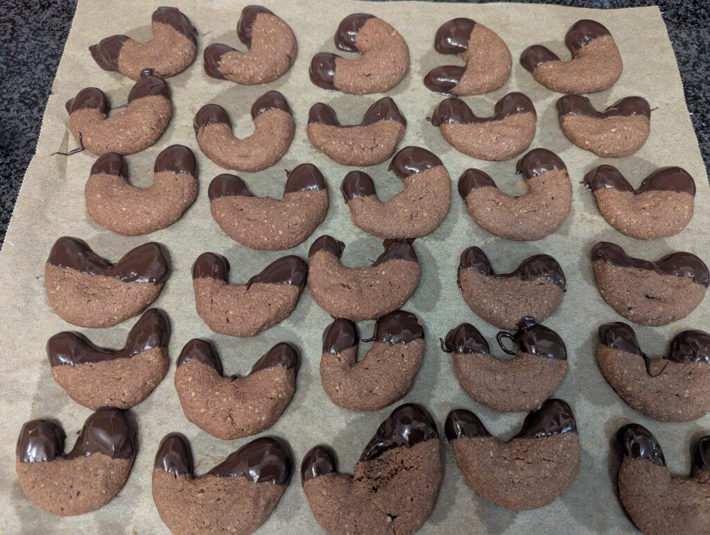 Wie liebe ich doch im Allgemeinen an der Adventszeit ausgesprochen den gesamten Lichterzauber, den Duft nach Plätzchen und Glühwein sowie den Besuch einiger besonderer Christkindlmärkte, muss ich in diesem Jahr ja fußbedingt aufgrund meiner so eingeschränkten Mobiltät auf jeglichen Ausflug komplett verzichten. Das einzige, was auch eher schlecht als recht geht, ist das adventliche Backen, was bei uns ja allein schon wegen des permanenen Beachtens der Kontaminationsfreiheit aufgrund der Zöliakie unseres Jüngsten nie ganz unbeschwert ist. Und dieses Jahr wurde es noch getoppt, in dem ich mit Blechen, Rührschüsseln und den gesamten Backzutaten auf dem Orthoscoot so lange von der Küche bis zum Wohnzimmer rollerte, bis mein linkes Schienbein komplett blau war. „Das sieht aber wirklich alles sehr abenteuerlich aus, was du da machst.“, bekam ich zweifelnd zu hören, aber ich freute mich, dass das Ergebnis der Adventsbäckerei doch dann allen sehr mundete und gerade auch für den töchterlichen Freund der Tochter eine große Auswahl an glutenfreiem Gebäck zur Verfügung stand. So ist die Adventsbäckerei zwar deutlichst reduziert, dafür aber um sehr viel Glutenfreies mehr reicher geworden…