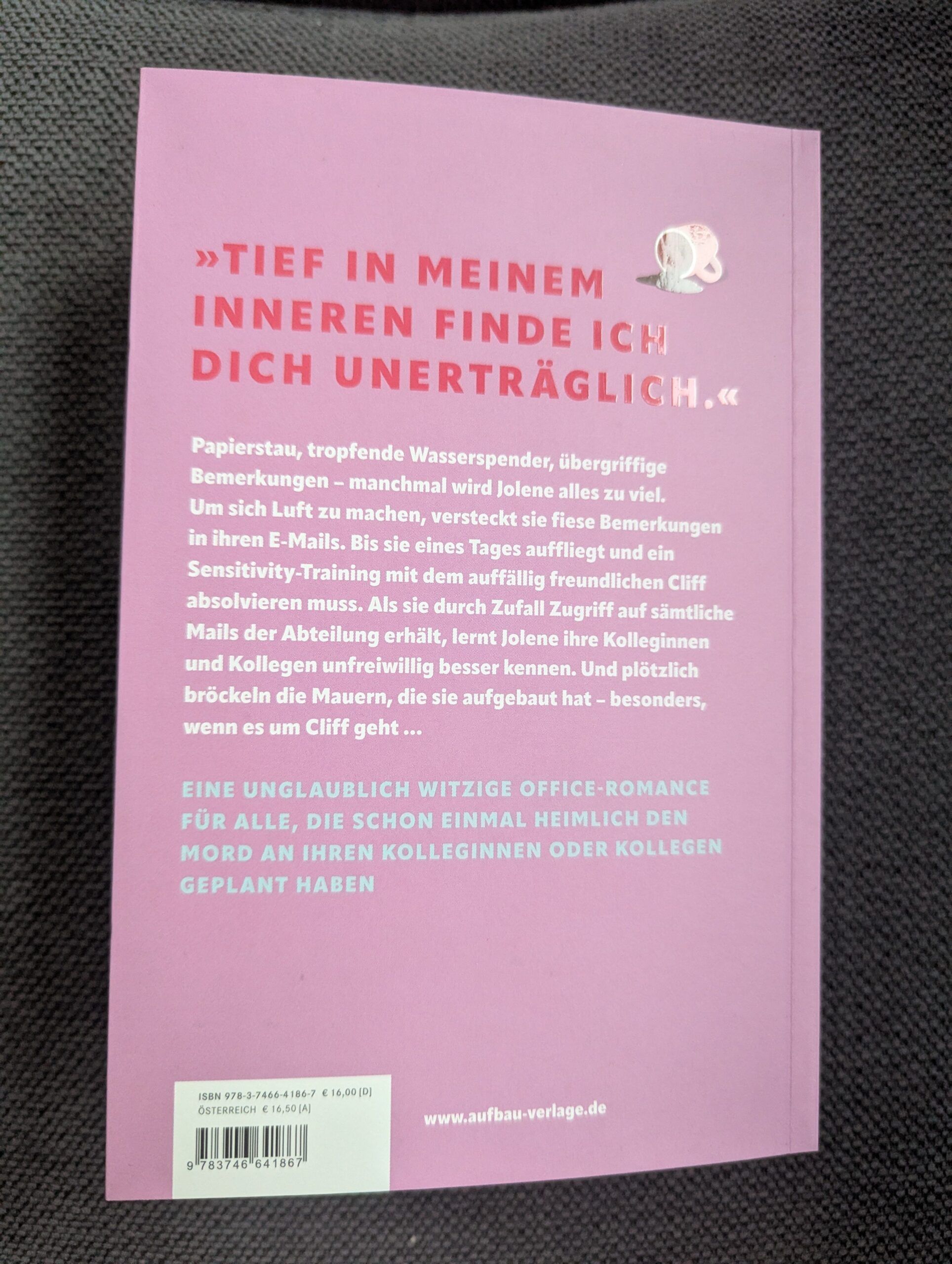 Kann man in den meisten Fällen ja seine Abneigung gewissen Kolleginnen und Kollegen nicht offen gegenüber zeigen, ist die Romanheldin dieses über 500 Seiten umfassenden Romans auf eine ganz besondere Idee gekommen. Verschickt sie vordergründig ganz neutrale oder sogar freundliche Mails, welche eben oft genauso so enden wie es im Buchtitel geschrieben ist, schreibt sie so ganz andere Botschaften und kleine Gemeinheiten, welche man tunlichst für sich behalten sollte, in weißer Schrift unter den offiziellen Mailinhalt.