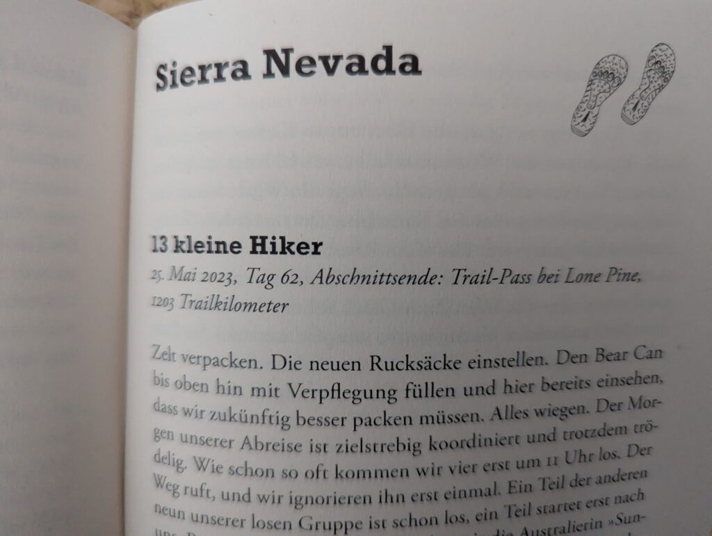 Ein halbes Jahr lang waren sie auf einem der längsten und forderndsten Fernwanderwege der USA unterwegs und hatten mit den schwierigsten Wetterverhältnissen zu kämpfen. Das Werk beschreibt sehr eindrücklich die Wandlung des Extremsportlerpaares vom regulären Langstreckenwanderer zum Thru-Hiker, welcher mit fast gar keinem Gepäck mehr unterwegs ist. Das Werk beschreibt nicht nur sehr eindrücklich und lebhaft jede einzelne Etappe von der Ankunft in San Diego in Südkalifornien über die Sierra Nevada, Nordkalifornien, Oregon, Washington bis nach Kanada, sondern bietet auch für alle Interessierten im hinteren Buchteil eine ausführliche Packliste sowie alles Wissenswerte rund um eine perfekte Organisation auch schon im Vorfeld zur Bewältigung des gesamten Trails oder aber auch nur für eine Teilstrecke.