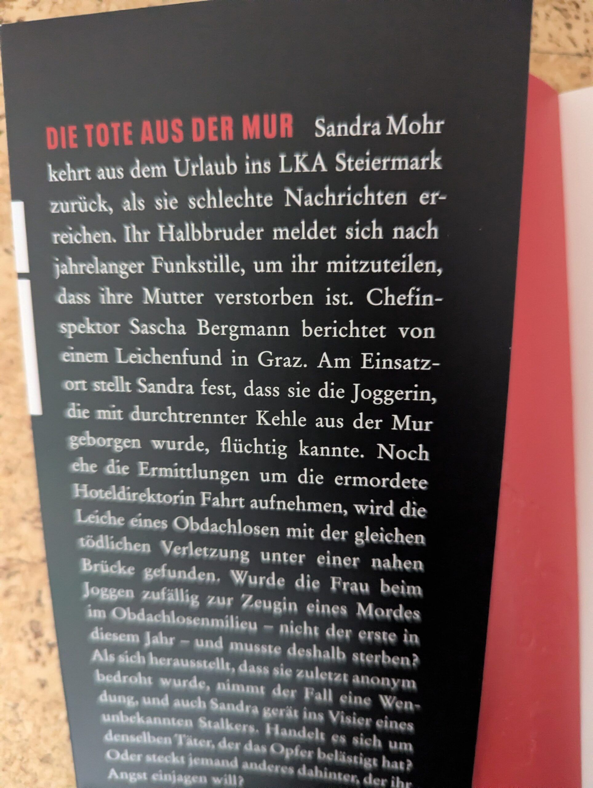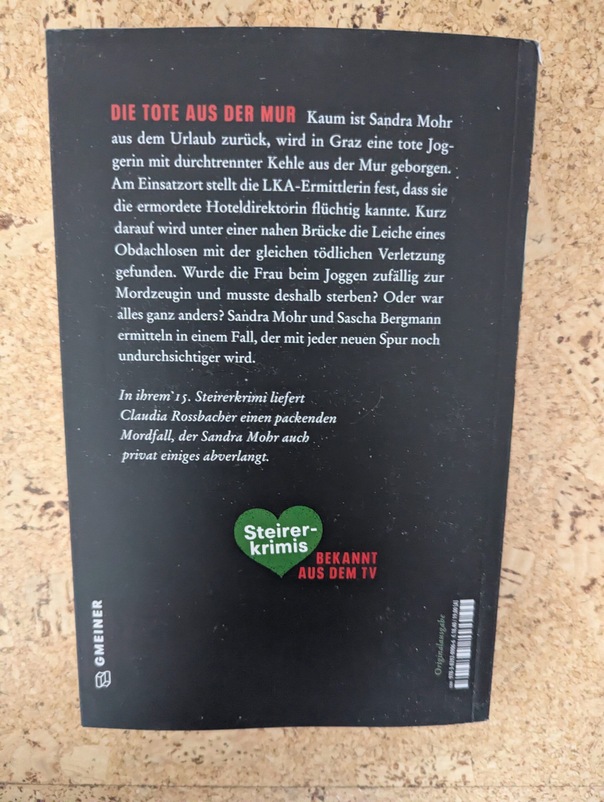 Nicht nur zur großen Freude aller langjähriger Fans der Steirerkrimireihe ist nun ganz aktuell im Gmeiner Verlag bereits der 15. Band dieser auch aus dem Fernsehen so bekannten Steirerkrimireihe (ARD) erschienen, welcher mit Sicherheit sowohl eingefleischte Liebhaber dieser Reihe als auch alle Neulinge begeistern wird. Dieses Mal ist die LKA-Ermittlerin Sandra Mohr gerade erst aus ihrem Urlaub zurückgekehrt, als sie nicht nur mit einer persönlichen Trauernachricht, sondern auch der Meldung eines grausigen Leichenfundes in Graz konfrontiert wird. Nachdem sie dabei feststellen muss, dass sie die ermordete Joggerin in ihrem Beruf als vierzigjährige Hoteldirektorin Mimi Waldner sogar flüchtig kannte, wird ihr Ermittlungsgeschick kurz darauf weiter auf die Probe gestellt, als eine weitere Leiche ebenfalls mit einer durchgetrennten Kehle gefunden wird.