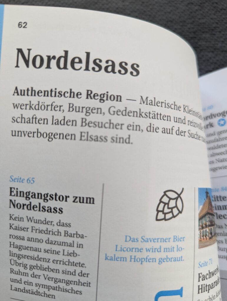 Dieser Reiseführer ist eine überaus gelungene Mischung aus der Vorstellung zahlreicher Sehenswürdigkeiten und reisepraktischer Informationen sowie der unterschiedlichsten Hintergrundinformationen in Form von Porträts, inspirierenden Geschichten, Reportagen und bezaubernden Fotos. Dem Autorenduo ist es bestens gelungen, das so facettenreiche Elsass aus den unterschiedlichsten Perspektiven zu präsentieren. Jedem größeren oder auch kleineren Ort wird die nötige Aufmerksamkeit gewidmet und der Inhalt dieses Reiseführers bietet weit mehr als nur die Basics von kleineren Standardreiseführern.