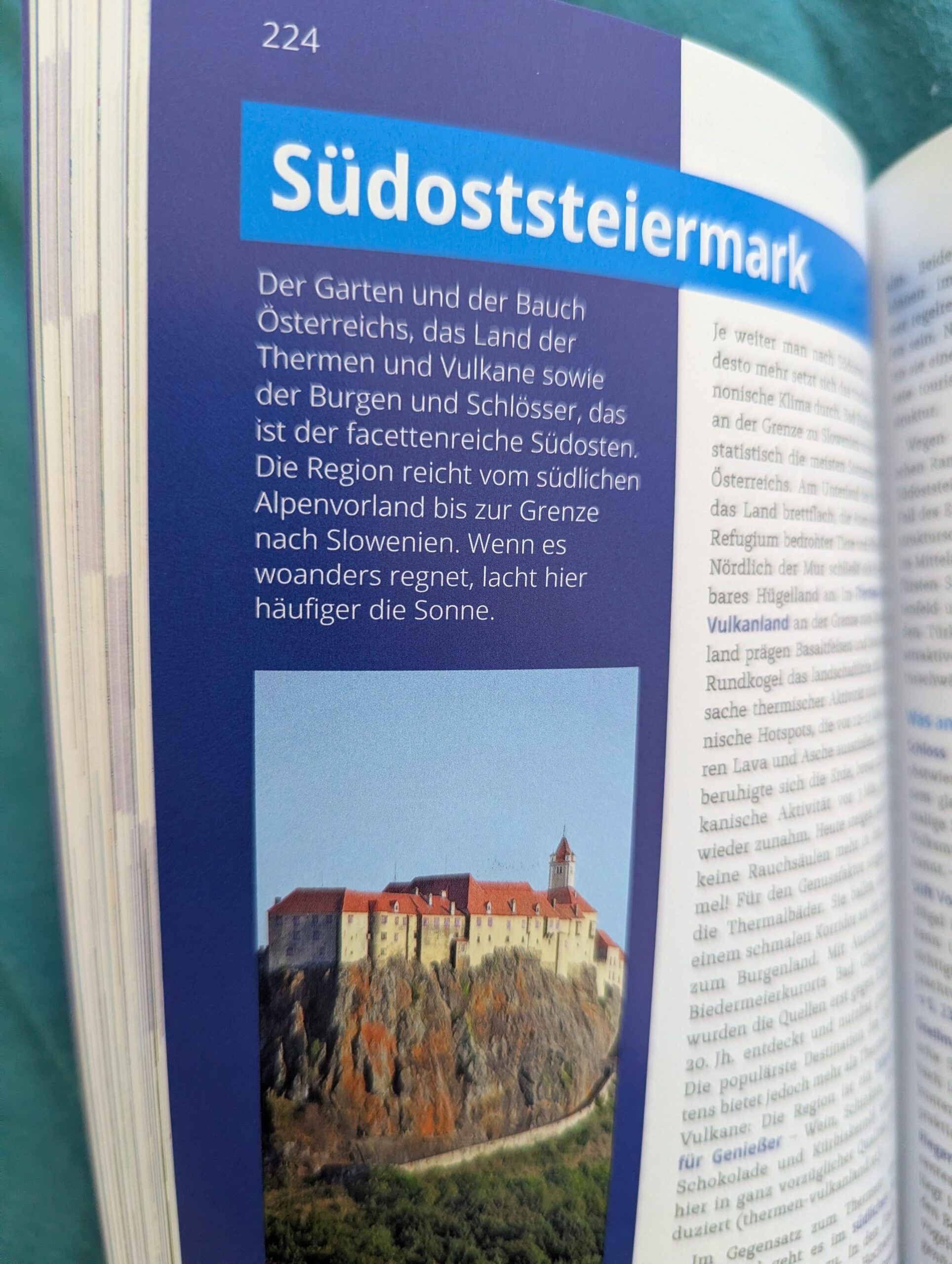 Dabei habe ich übrigens mit großer Freude gesehen, dass anders als in vielen anderen Reiseführern meine geliebte Schokoladenwelt von Zotter selbstverständlich auch ausführlich vorgestellt wird. Jedem kleineren oder größeren Ort ist mit viel Liebe zum Detail eine Vorstellung zu eigen und man erhält zudem stets sehr persönliche Essens- oder Übernachtungstipps sowie zahlreiche reisepraktische Informationen. Dank des Reiseführers habe ich zum ersten Mal den Urlaubsort „Lungau“ (der direkt neben der Steiermark gelegen ist) richtig verorten können, den ich ansonsten jahrzehntelang nur aus den mütterlichen Erzählungen kannte. Waren doch meine Eltern mit mir als Kleinkind in den Lungau gefahren, von dem ich nun gesehen habe, dass es dort wirklich wunderschön sein muss und waren basserstaunt, dass ihr Wandervorhaben mit Kleinkind nicht so wirklich aufging, schrie ich doch sofort nach den ersten direkt nach dem Frühstück zurückgelegten Wandermetern „Papa, Hula“, was „Papa, auf die Schultern“ bedeuten sollte., woraufhin sie schweren Herzens im Jahr darauf dann doch einen klassischen Strand- und Badeurlaub an der Adria mit mir verbracht haben.