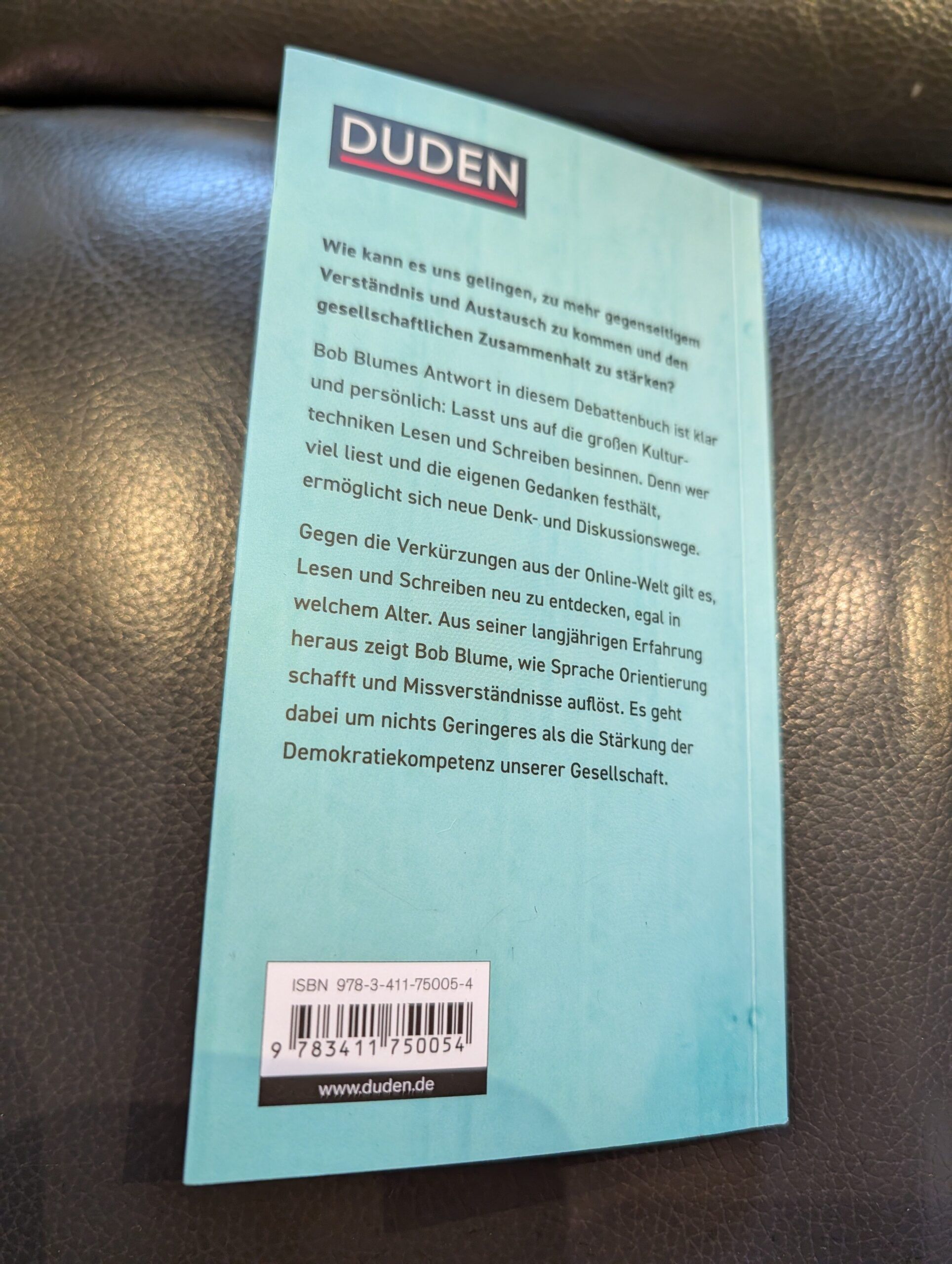 Ein Buch, das mit einem Rilkegedicht eingeleitet wird, kann ja nur gut sein. Und tatsächlich ist dieses schmale Büchlein von 78 Seiten, das ganz aktuell im Dudenverlag erschienen ist, jeden einzelnen Satz mehr als wert. Und dann kommt noch das Kuriosum hinzu, dass ich mit dem Autor und Vater nicht nur eine große Namensähnlichkeit bezüglich meines Mädchennachnamens teile, sondern auch einen seiner Berufe, in Form der Gymnasiallehrerin, sowie die Vorliebe für den Philosophen Marc Aurel und Dante. All den Vorschusslorbeeren wird dieses Traktat mehr als gerecht. Allein den Ansatz, in diesen gesellschaftlich und geopolitisch so herausfordernden und oft auch ausgesprochen beängstigenden Zeiten einen Lösungsvorschlag zu sehen, in dem man das Besinnen auf so alte Kulturtechniken wie die des Lesens und Schreibens forciert, finde ich sehr beeindruckend und er entspricht voll und ganz meiner Überzeugung.