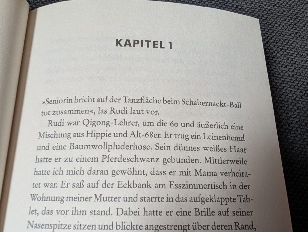 Der Krimi hält eine wunderbare Mischung aus einer Liebesgeschichte, dem Miterleben eines nicht ganz gewöhnlichen Mehrgenerationenhaushaltes in einer Patchworkversion und spannender Ermittlungsfälle bereit. Der Ich-Erzähler wohnt in einem Mehrgenerationen- und Mehrfamilienhaus zusammen mit seiner Mutter und deren Lebensgefährten, seiner Schwester und seinem elfjährigen Sohn (zumindest phasenweise, während dessen Zwillingsschwester unter der Woche nicht beim Vater übernachten mag) Alle Münchenfans wird es zudem begeistern, von einzelnen, sehr bekannten Lokalitäten wie dem Hofbräuhaus, dem Hirschgarten und weiteren typischen Münchner Institutionen und Plätzen zu lesen. Oft präsentiert die Autorin skurrile Momente, wenn der Bestatter z.B. die Stimme seiner verstorbenen Großtante immer wieder hört und darauf laut antwortet. Die schlagkräftigen Dialoge sind häufig im Münchner Dialekt gehalten, so dass man sofort voll und ganz in dieses liebenswerte Millionendorf eintauchen darf. Immer wieder kann sich die Leserschaft zudem an überraschenden Pointen und Wendungen erfreuen. Außerdem hat die Autorin viele kreative Einfälle realisiert, so z.B. auch, dass die Tote eine Zwillingsschwester hatte, die jedoch seit einem knappen halben Jahrhundert wie vom Erdboden verschluckt war und man mit größter Spannung verfolgt, ob auch dieser Fall noch gelöst werden kann.