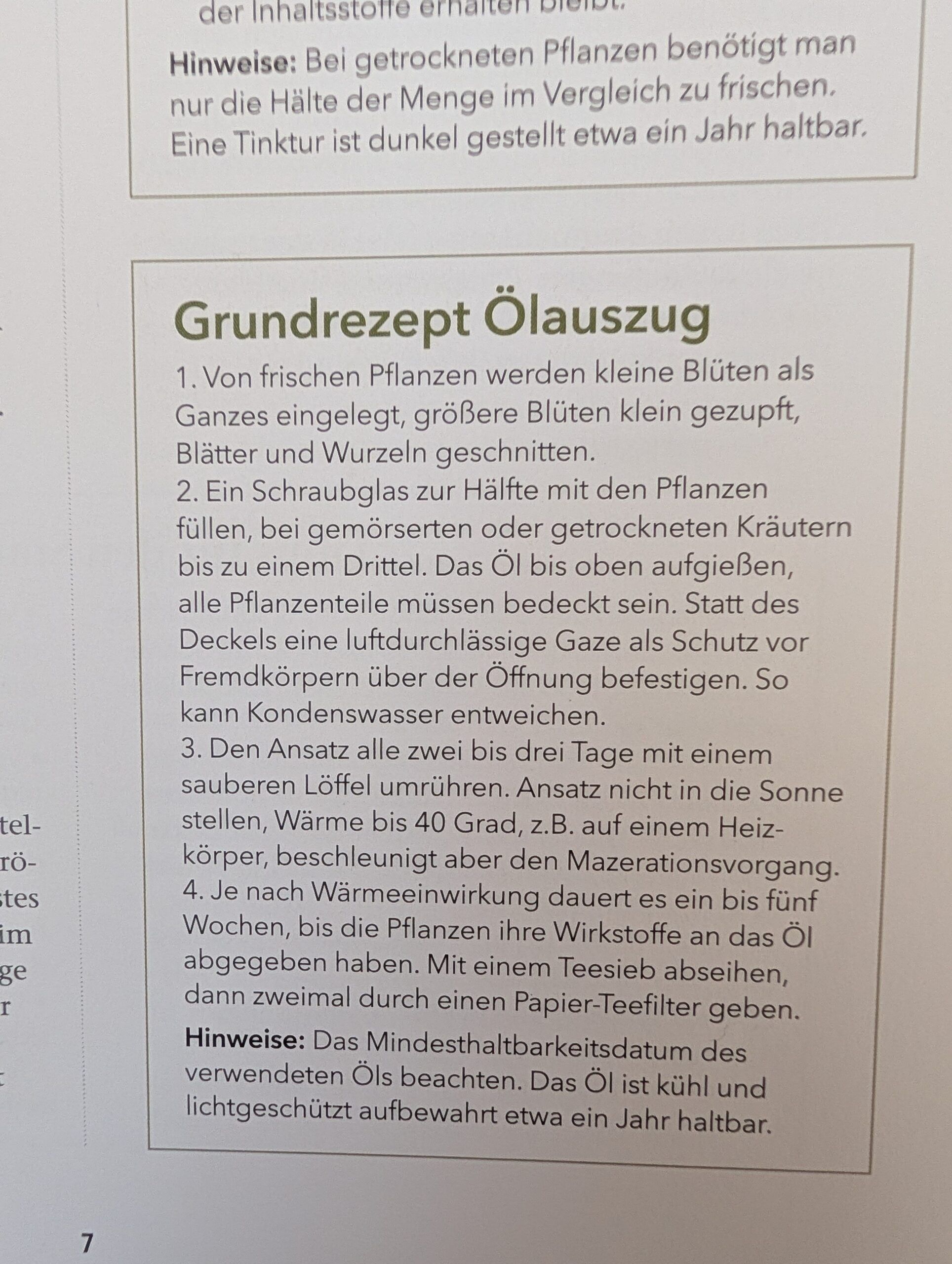 Zudem ist auch den Bäumen, Blättern und Sprossen ein eigenes Kapitel gewidmet, in dem man viel Erstaunliches und Nützliches erfährt. Wusstet ihr z.B., dass man gegen Rückenschmerzen und Muskelkater selbst aus jungen Fichtensprossen den so bewährten Franzbranntwein herstellen kann oder auch, dass sich eine Schwitzkur bei den ersten Erkältungsanzeichen optimal für eine Schwitzkur mit Holunder- oder auch Lindenblüten eignet? Und jeder Spaziergang oder auch Radtour wird deutlich reizvoller, wenn man weiß, dass sich ein Verweilen am Wegesrand für wesentlich mehr als nur eine schnöde Brotzeitpause eignet.