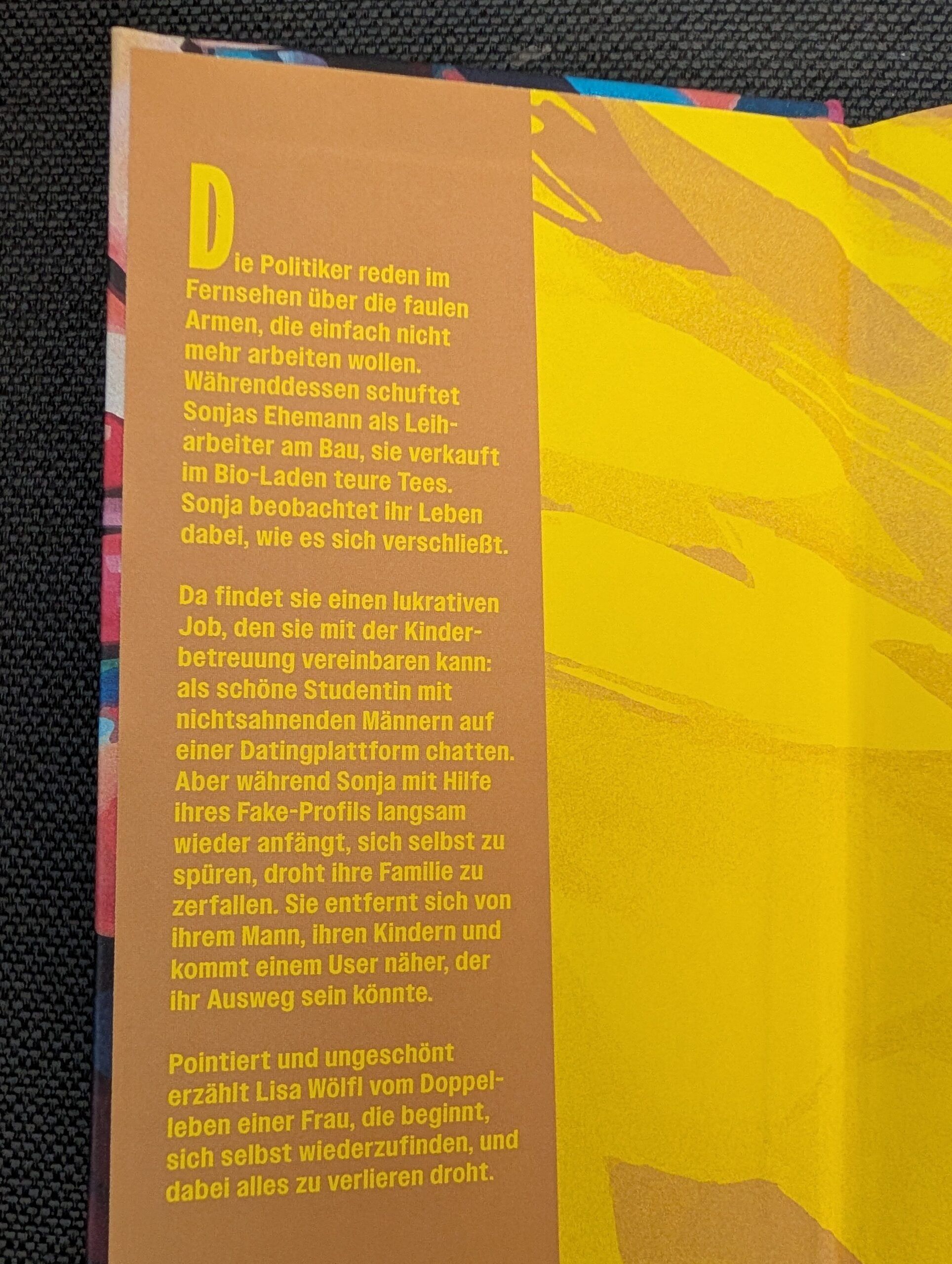 Genauso unruhig wie das Cover dieses ganz aktuell im Kremayr&Scheriau-Verlag erschienenen Romans wirkt, wird sich wohl auch die Protagonistin des Buches, Sonja, fühlen, die wahrlich kein einfaches Leben zu bestreiten hat. Sie zerreibt sich zwischen ihrer Arbeit im Einzelhandel, den mütterlichen und ehelichen Pflichten und leidet zudem noch unter permanenten finanziellen Sorgen. Der Verlust ihres Jobs treibt sie schließlich in ein zwielichtiges Geschäftsmodell, bei dem sie unter einem Fakeprofil gegen Bezahlung mit fremden Männern chattet. Wider Erwarten stärkt dies ihr völlig verlorenen gegangenes Selbstbewusstsein sowie das Gespür für sich selbst, sorgt jedoch zugleich für ein immer größeres Krisenpotential in ihrer eigenen Familie.
