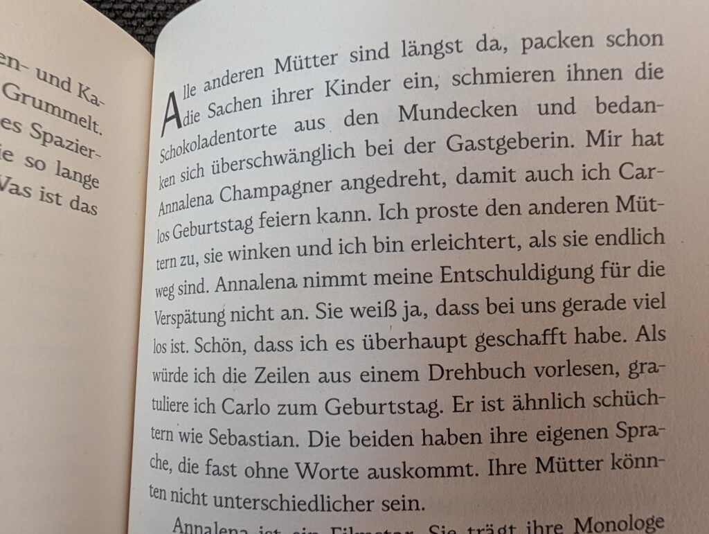 Nebenbei sei übrigens in diesem Zusammenhang erwähnt, dass eine nicht zu verachtende Prozentzahl gerade der berufstätigen Mütter ihren Beruf nach einer solchen Diagnose aufgeben oder deutlich reduzieren muss, da das Blutzuckermanagement tatsächlich unglaublich viel Zeit, Nerven und Dauererreichbarkeit Tag und Nacht erfordert, gerade wenn die Kinder noch klein sind. In die Gedanken- und Gefühlswelt der knapp 50-jährigen Protagonistin werden sich wohl die meisten der Frauen und gerade auch die Mütter bestens hineinversetzen können, wenn sie von deprimierenden, auslaugenden, monotonen oder auch schmerzerfüllten Situationen erzählt. Dadurch dass Sonja Geld verdient, indem sie für das Chatten mit Männern bezahlt wird, wächst ihr Selbstbewusstsein zunehmend. Die häufig sehr kurz gehaltenen Sätze spiegeln ideal die innerliche Unruhe und Daueranspannung der Hauptfigur wider. Außerdem sind sie an vielen Stellen mit äußerst treffenden Vergleichen aufgeladen. Immer wieder ist es schmerzhaft zu lesen, dass die Familie ebenso öfters mit denselben Diabetesproblemen bei Schulkindern wie es bei uns der Fall ist, zu kämpfen hat. Der Roman bietet ein sehr sympathisches offenes Ende, das allen Leserinnen und Lesern ermöglicht, je nach Gusto die Weiterentwicklung von Sonja und ihrem Lebensweg auf ganz individuelle Weise zu entwerfen.