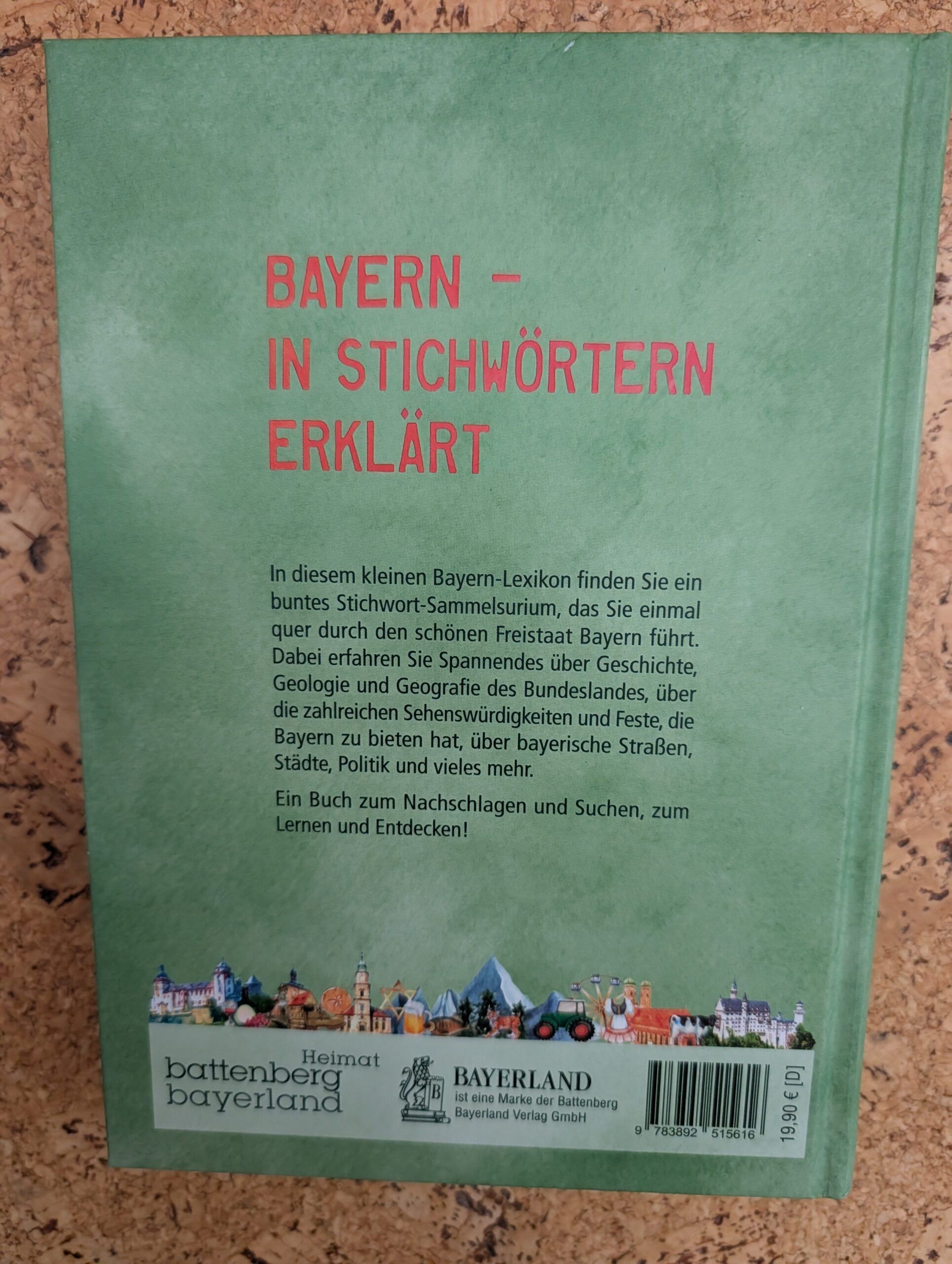 Ich erinnere mich noch gut, wie ich vor etwa 30 Jahren jedes Jahr ein Buch gekauft habe, das die wichtigsten Entwicklungen eines Jahres im gesamten Deutschland in Zahlen und Statistiken dargestellt hat, was sehr interessant, doch gleichzeitig ausgesprochen trocken war, bot das ganze Werk doch kein einziges Bild, eine farbliche Grafik oder Ähnliches. Ganz anders ist das nun im ganz aktuell im Battenberg-Verlag erschienenen „Das kleine Bayern-Lexikon – der Freistaat in Stichwörtern“ von Werner Wirth gestaltet, das höchst ansprechend und abwechslungsreich einen umfassenden Ein- und Überblick bezüglich der Städte, Gewässer, Berge, Geschichte, Politik, Sehenswürdigkeiten und einiges mehr vermittelt. Dabei wird man wohl die nachgeschlagenen Informationen deutlich nachhaltiger im Gedächtnis behalten als wie, wenn man nur etwas auf die Schnelle nachgooglen würde, was dann zusammenhangslos genauso schnell, wie das Suchergebnis aufgeploppt ist, wieder in Vergessenheit gerät.
