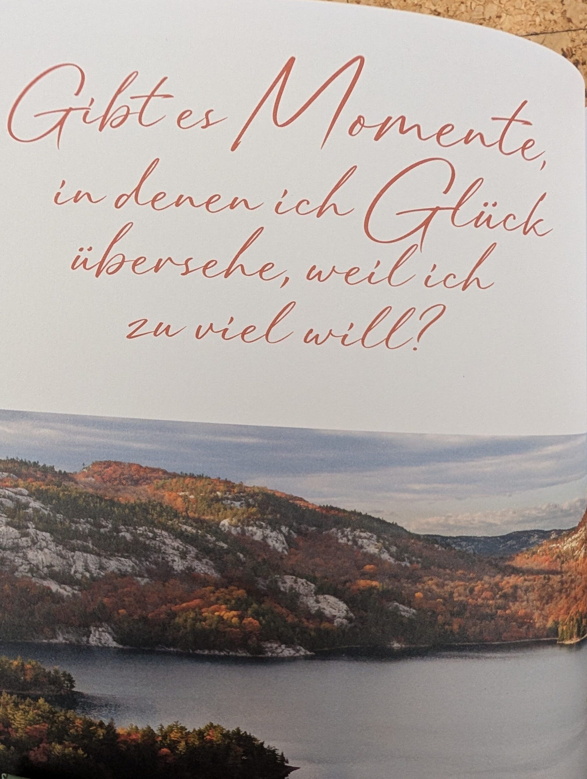 Gemäß des im Vorwort angegebenen Mottos auf der Seite 2: „Glück kennt keine Landkarte – nur Augenblicke, in denen wir hellwach sind.“ werden Städte und Regionen wie Venedig, der Perito-Moreno-Gletscher, die Provence oder aber auch der Bleder See und Isfahan vorgestellt und deren Charakteristika beschrieben. Zugleich erhält man jedoch auch weit über einen Reiseführer hinausgehend viele verschiedene Denkanstöße oder Achtsamkeitsübungen, welche einen alle auf der Suche nach den kleinen und großen Glückmomenten unterstützen. Und sollte dies selbst alles in traurigen Zeiten nicht sofort wirksam sein, so werden wohl doch die Zitate wie z.B. dieses von Carl Gustav Jung auf der Seite 45 mit „Auch das glücklichste Leben ist nicht ohne ein gewisses Maß an Dunkelheit denkbar.“ imstande sein, Trost zu spenden.
