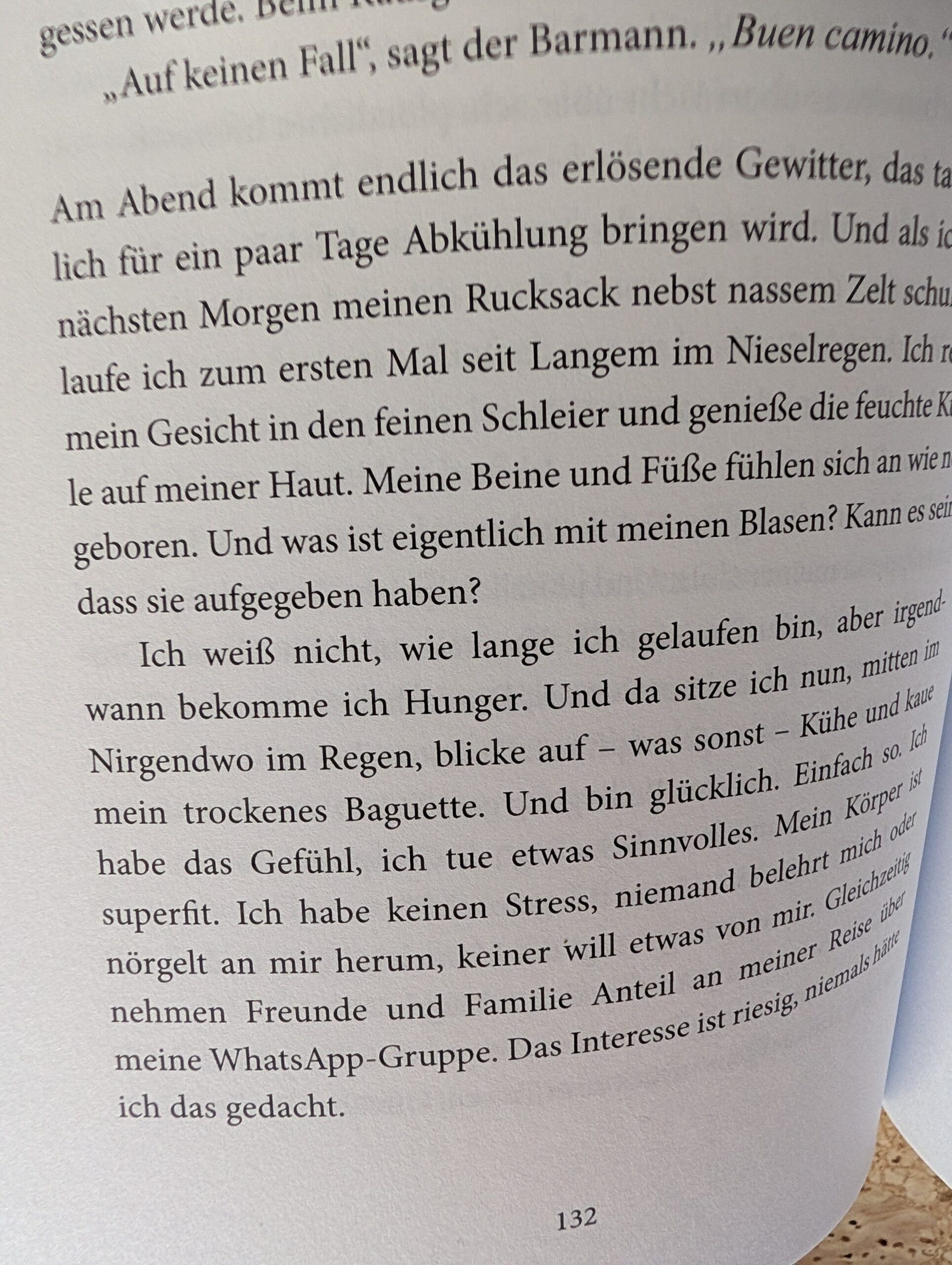 Die Autorin zieht einen mit ihrer Erzählung unaufhörlich in den Bannn und gerade auch die Berichte ihrer zahlreichen Begegnungen mit so unterschiedlichen Menschen sind ausgesprochen lesenswert. Und anhand der so verschiedeneren Biografien wird auch die Leserschaft immer wieder zum Reflektieren angeregt, z.B. über Begriffe wie „Heimat, Zugehörigkeitsgefühl“ oder eben auch „Sinn des Lebens oder Lebenskrise“. Gleichzeitig lernt man auch viel über die durchwanderten Landschaften und zahlreiche Attraktionen der jeweiligen Regionen kennen.