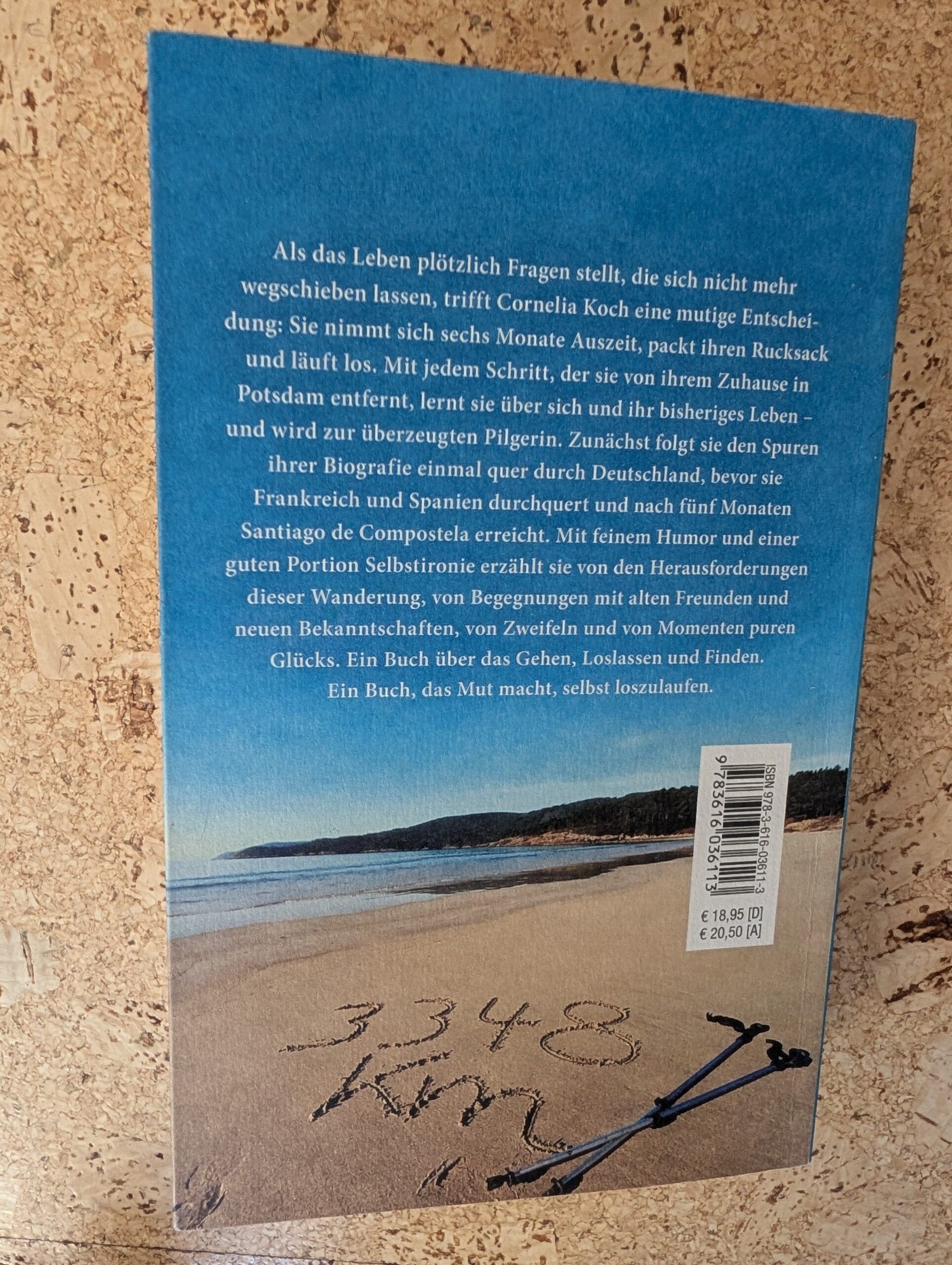 Während für eine Vielzahl der Leute in ganz Europa ein kürzeres oder längeres Pilgern, sei es aus religiösen oder auch aus hauptsächlich sportlichen Gründen, ganz oben auf der Bucketlist steht, war genau dieser Ort definitiv nicht das erklärte Ziel für die Journalistin und Kommunikationstrainerin Cornelia Koch. Für die mittlerweile 60-jähirge (welche auf den Fotos absolut mädchenhaft und sogar jünger als 50 Jahre wirkt) war das gesamte Gebiet des Weitwanderns bis vor zehn Jahren überhaupt nicht präsent, ehe sie es als immer wichtiger erachtete, eine Art Rückschau auf ihr bisheriges Leben zu halten und daher beschloss, von ihrem Zuhause in Potsdam bis zu ihrem Geburtstort in Westfalen (Münster) zu wandern. Wie sie schließlich weit über Deutschland hinaus halb Frankreich und Spanien bis hin nach Santiago de Compostela durchwanderte, wo sie nach dem Zurücklegen unglaublicher 3348 Kilometer innerhalb von 5,5 Monaten schließlich nicht nur diesen einzigarteigenen Ort erreichte, sondern auch von dem Glücksgefühlt durchströmt wurde, endlich bei sich selbst, in ihrem Innersten angekommen zu sein, beschreibt sie auf über 300 Seiten.
